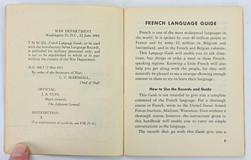 In a very nice condition a US WW2 French Language Guide. The booklet is nicely dated 1943 and comes in a complete condition.