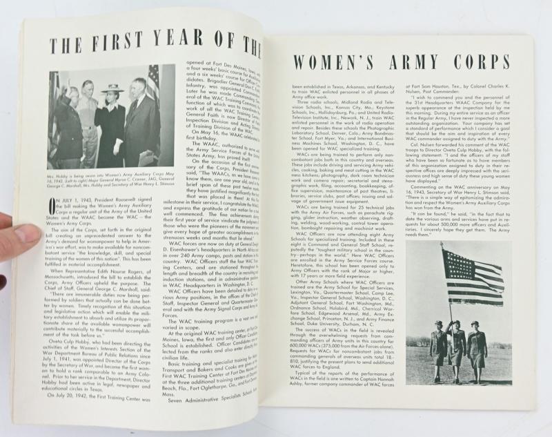 In a nice used condition a US WW2 Woman's Army Corps Magazine. The magazine has some damage from paper eating bugs but still in an ok shape!