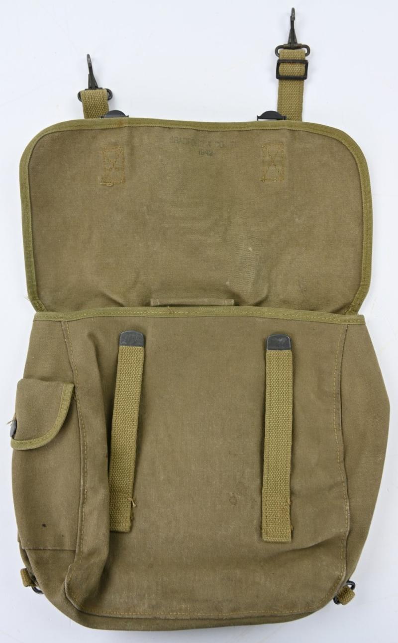 In a very good condition an US WW2 M-1936 Musset Bag. The bag is dated 1942 and is maker marked by Bradford & Co. A very good musset bag!
