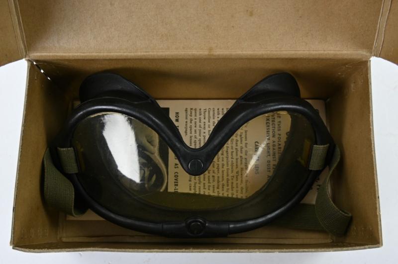 In a very good condition a US/USN WW2 M-1944 Flying Goggles in Case. The polaroid goggles comes with spare glases, instruction and in a supple condition.