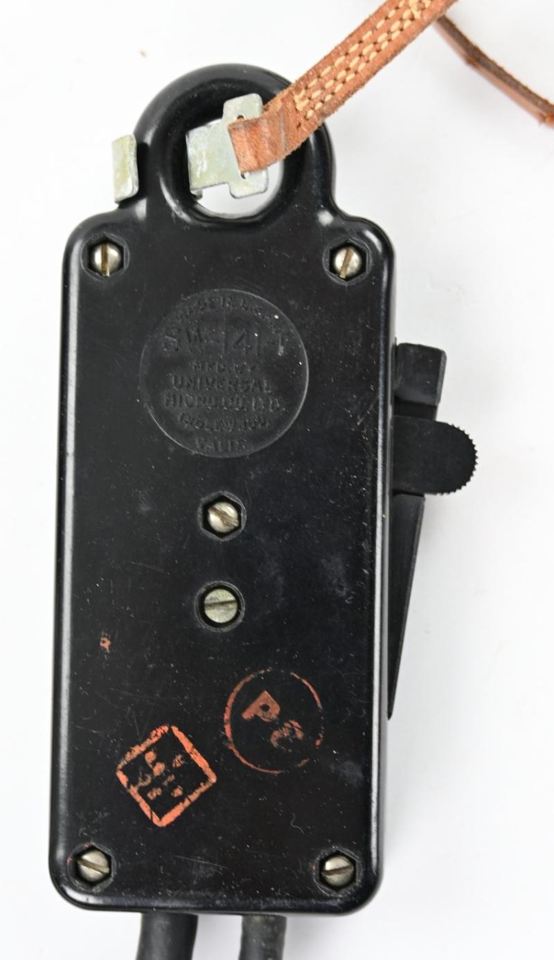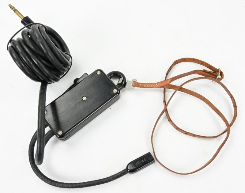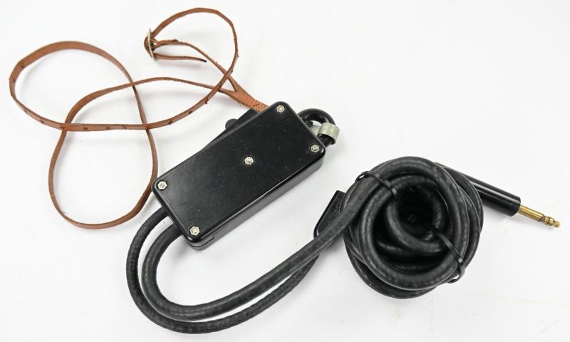 The SW-141-V switch was an integral part of the internal communications systems in WW2 US armored vehicles and airplanes. Worn around the neck it was connected to the T-30 throat-mic and to the main communications net via a jack plug. When the switch was depressed the mic went "live" enabling the speaker to communicate with his fellow crewmen. The switch could be locked in place to keep the channel open, as necessary.
