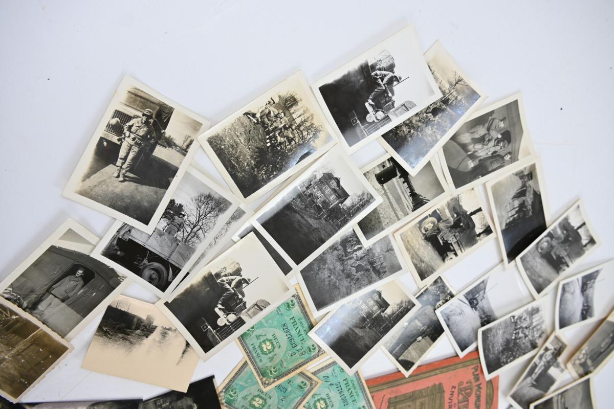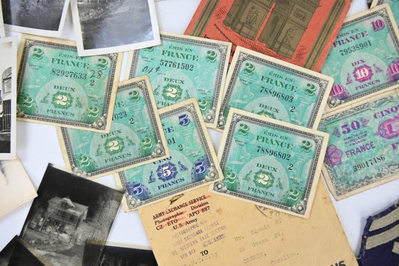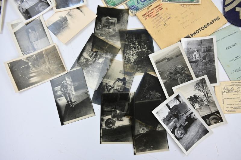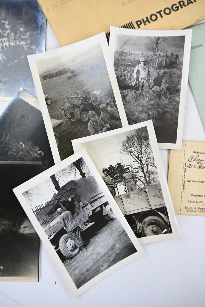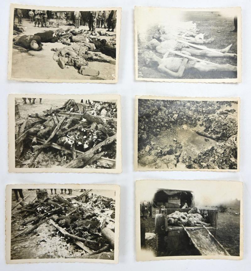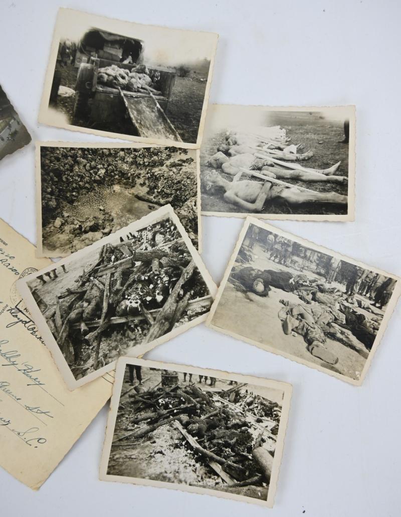 The grouping contains various pictures, negatives, documents, drawn roadmap for emergencies, invasion money, fieldpost, personal papers and a set of 6 original pictures of a German Death Camp.