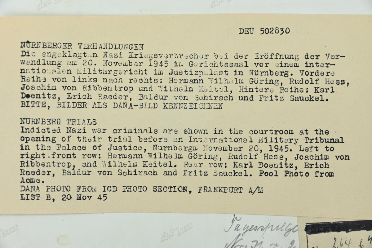 Allied Nuremberg War Trail Press Photo 'Göring & Hess'