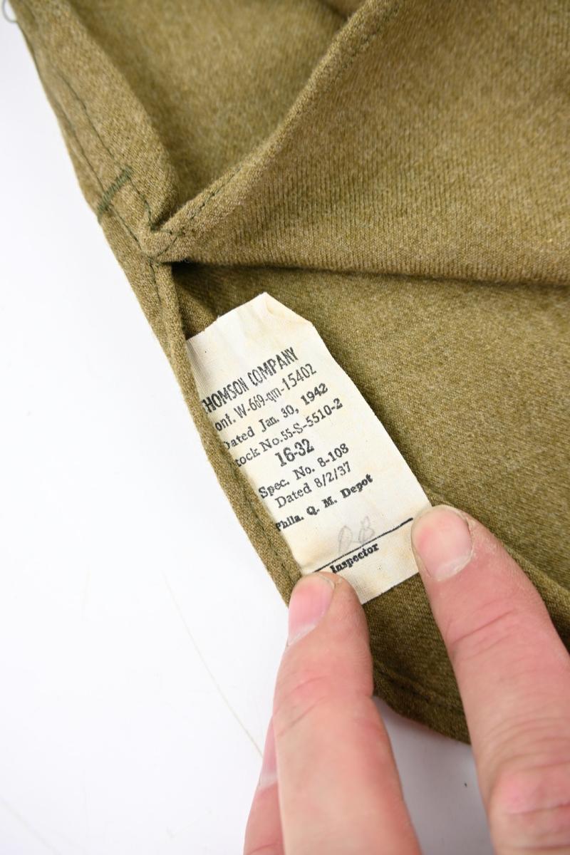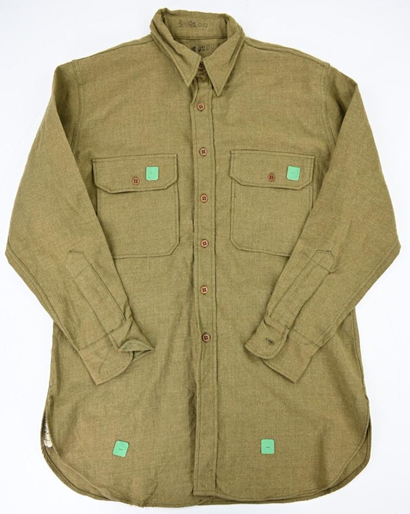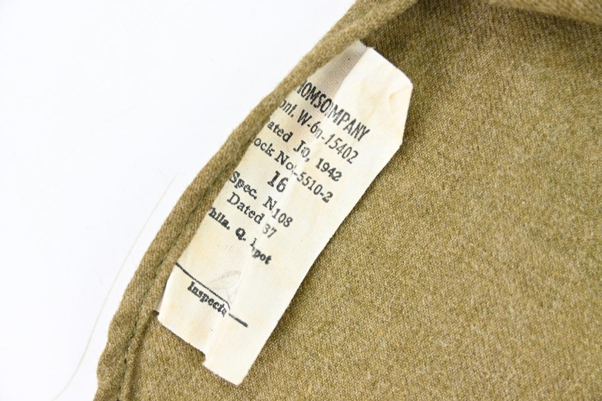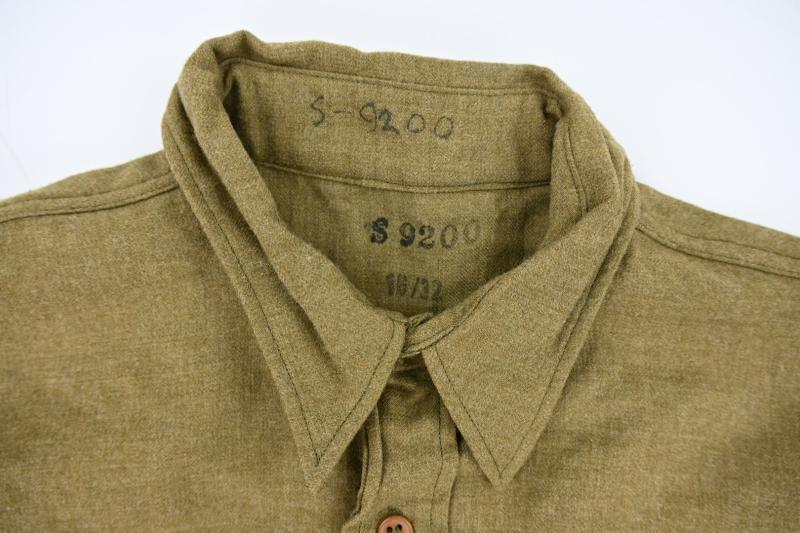 In a very good condition a US WW2 Wool Shirt for Enlisted Men. The shirt comes in a good mannequin size 16-32 and is complete with the orginal oil label inside dating the shirt to 1942. A very stunning shirt!