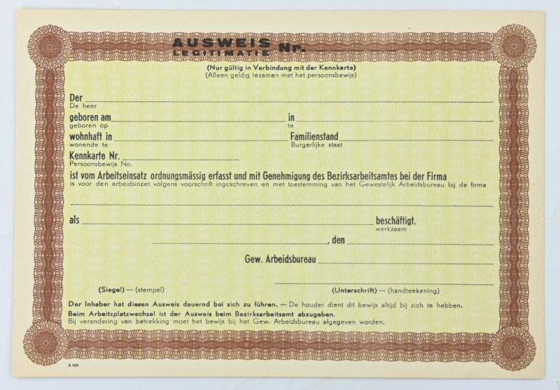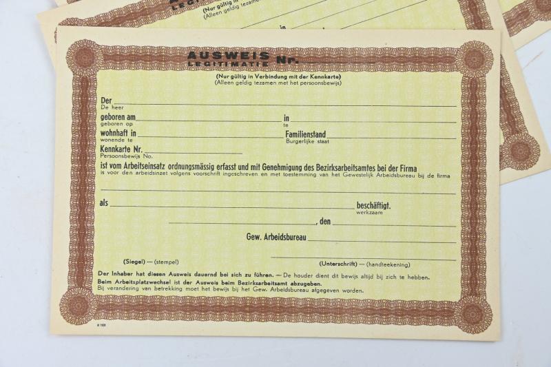 In a mint condition a set of 10 German Dutch Occupation Ausweis Paper for Dutch Citizens.