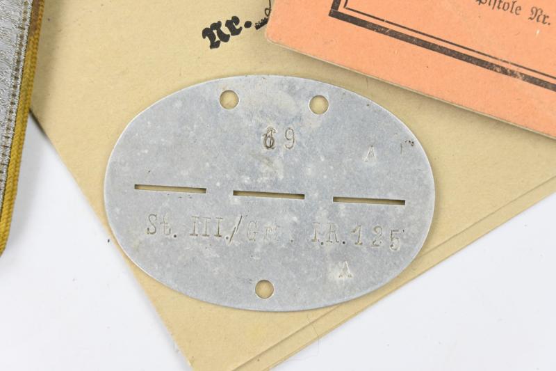 The grouping contains the dogtag of Hugo, memberpasses and his NCO ranked signal troops shoulderboards!