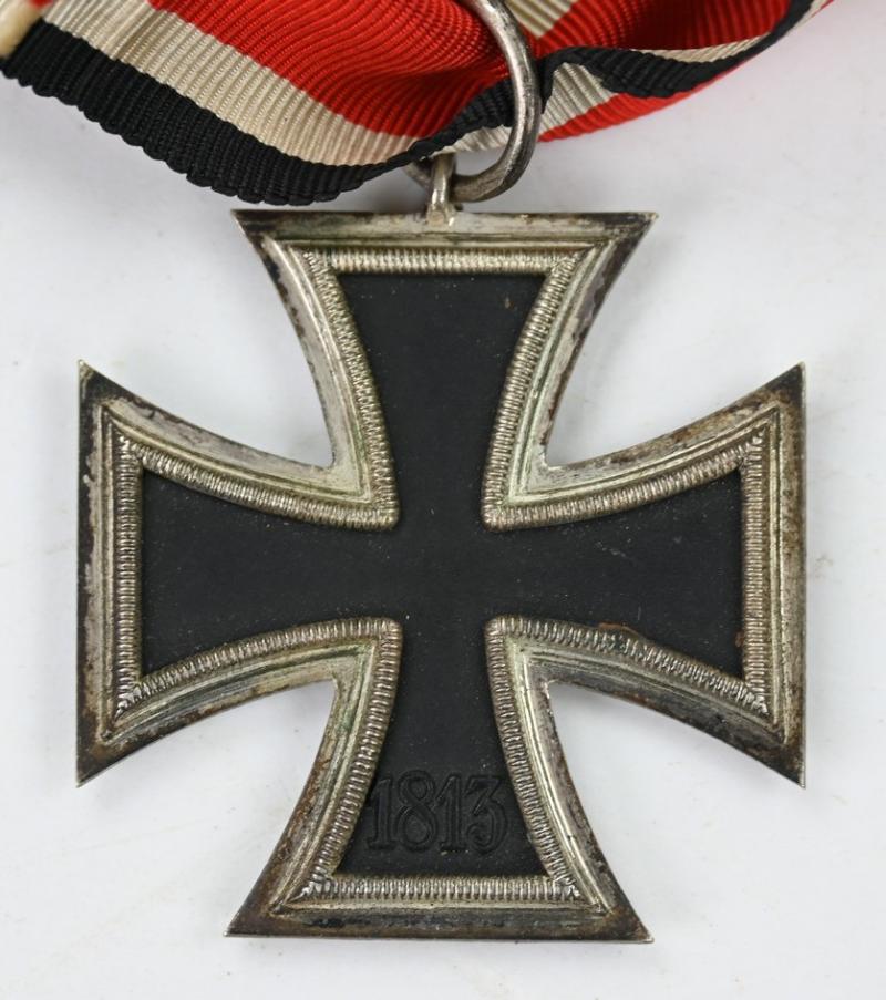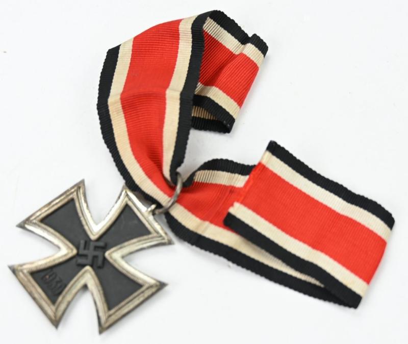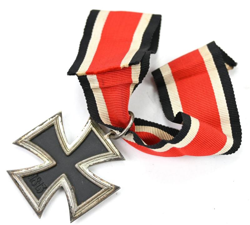 In a very good condition a German WW2 Iron Cross 2nd Class (or Eiserne Kreuz 2.Klasse) The cross comes without maker marking. It's complete with the attached ribbon.
