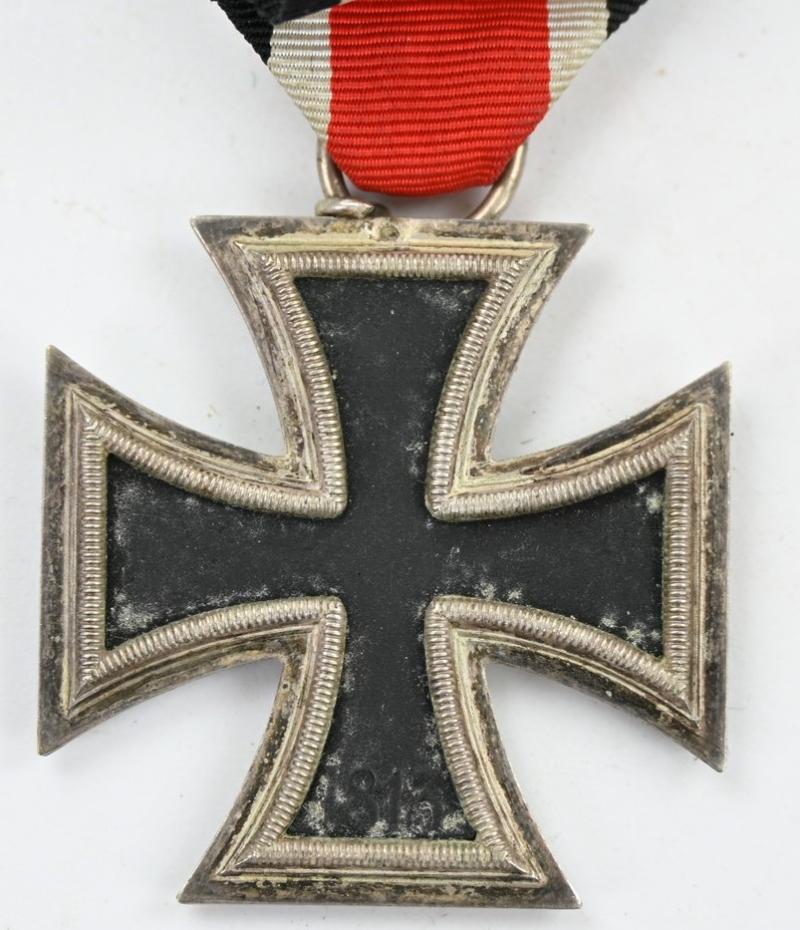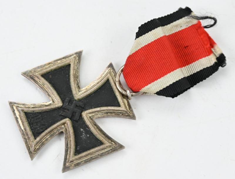 In a very good condition a German WW2 Iron Cross 2nd Class (or Eiserne Kreuz 2.Klasse) The cross comes without maker marking and the small ring is a bit bend. It's complete with the attached ribbon.