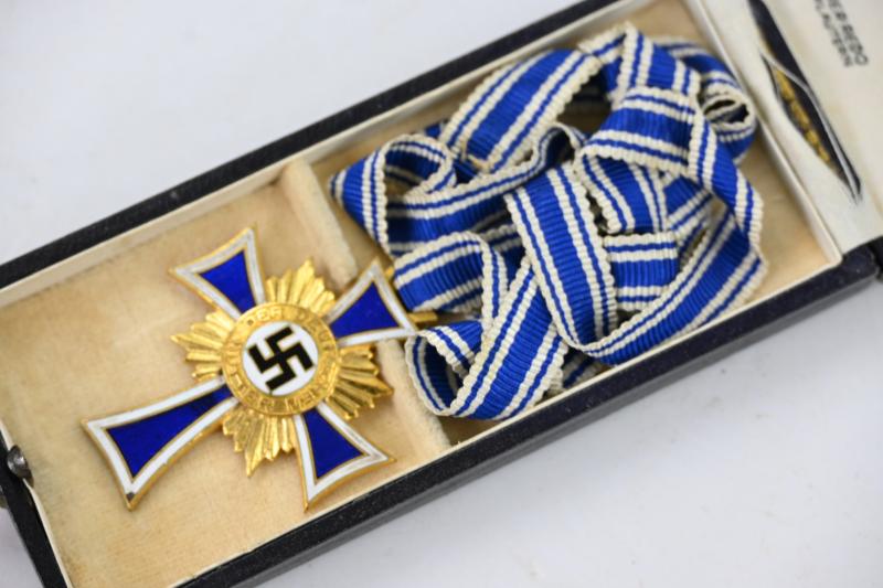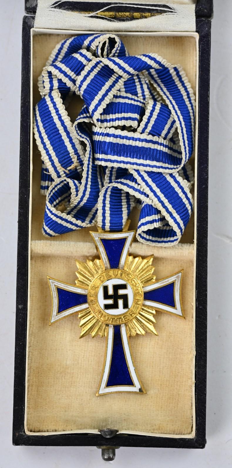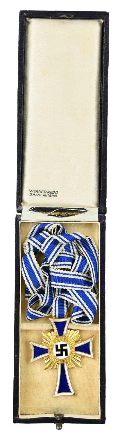 In a very good condition a German Mother's Cross in Gold. The cross is in a very good condition and comes together with the original case made by Werner Redo from Saarlautern.