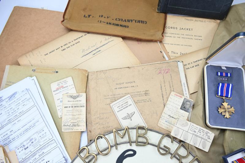 The grouping contains all his wartime documents as Flight Reports, Airplane Maintance Reports, Mission reports, Health reports, Award documents and many many more.