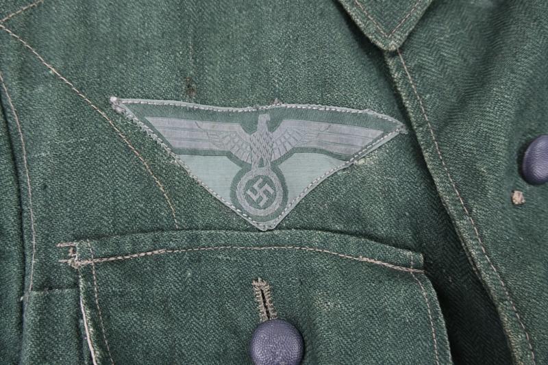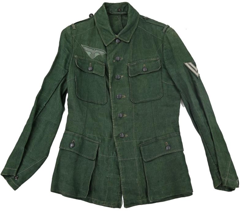 In a very good mint condition a German Wehrmacht (Heer) M43 HBT (Drillich) Combat Tunic.