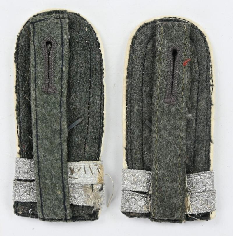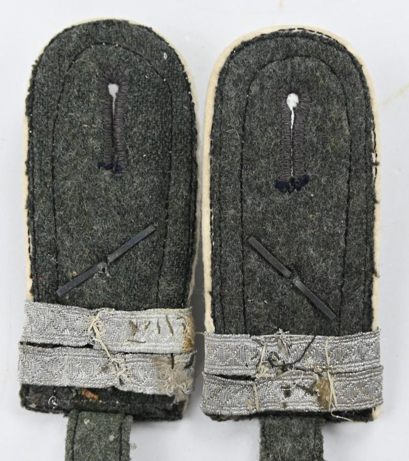 In a very good condition a matching set of German Wehrmacht NCO Shoulderboards Infantry. The set comes with the original attached 'Offizier anwarte' (Officer Candidate Slip-ons) attached.