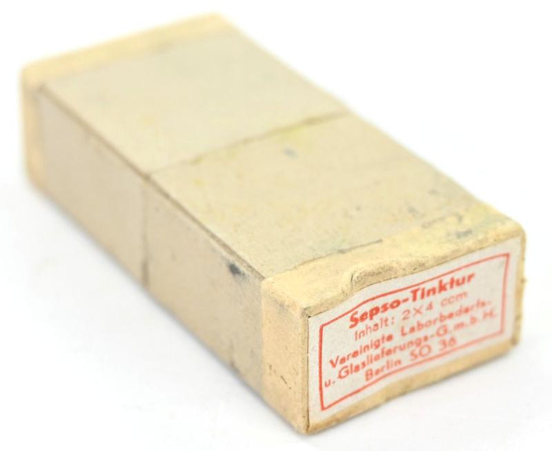 In a very good condition a German Third Reich Period Medical Sepso Tincture Package. One of the bottle comes with the original content still inside. Nice item for display!