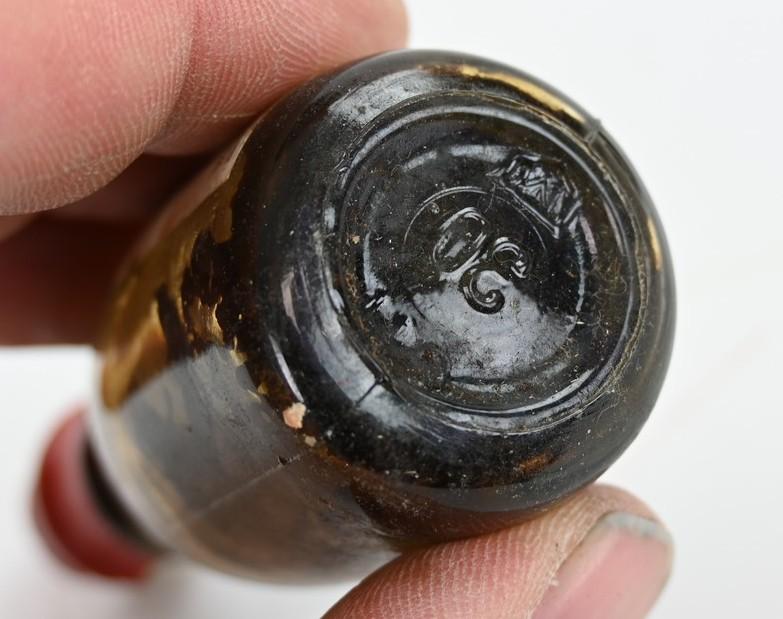 in a very nice condition a German DRK Deutsche Rotes Kreuz Medical bottle of Baldriantropfen (valerian drops or valerian tincture). The bottle comes without content.