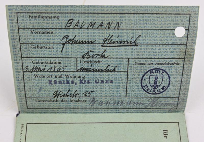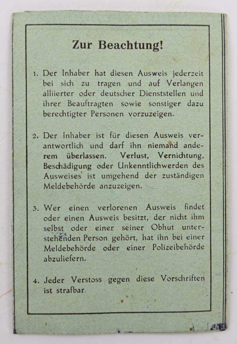 British Zone I.D. Card Germany