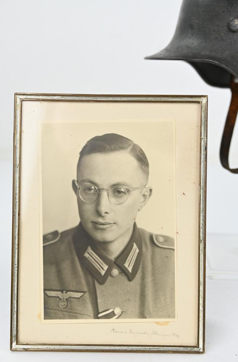 next to his helmet his written 1st pattern wehrpass is present with all his campaigns were he was part in inside.