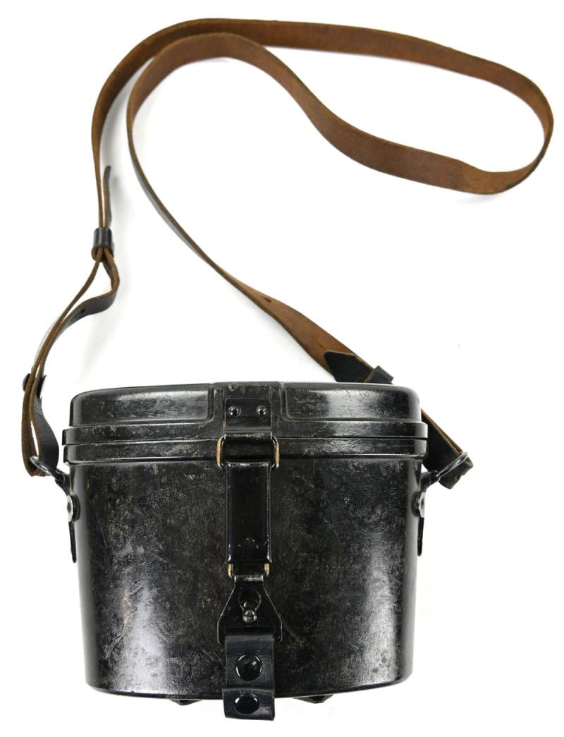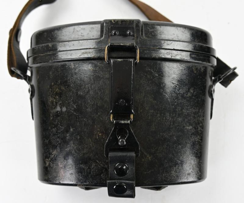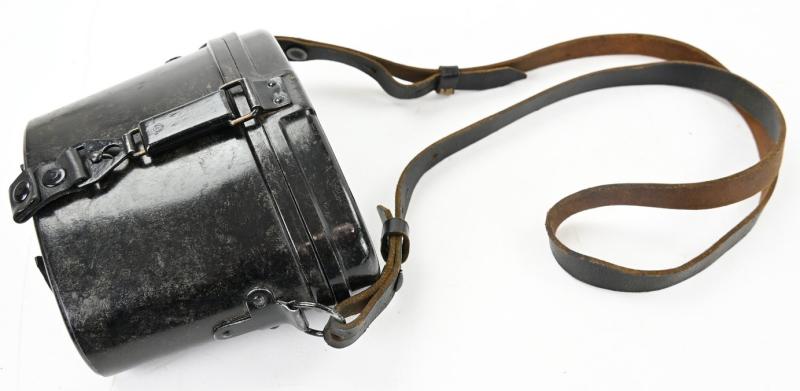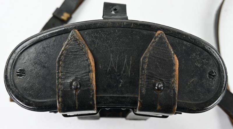 The carrying case is made of bakelite and is complete with the leather belt straps.