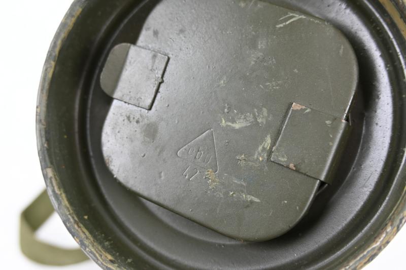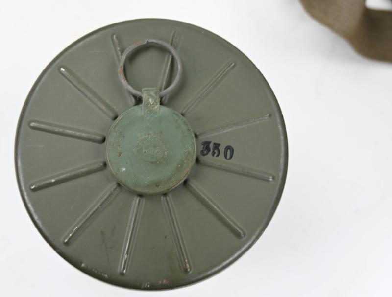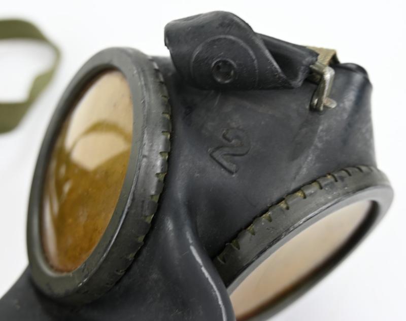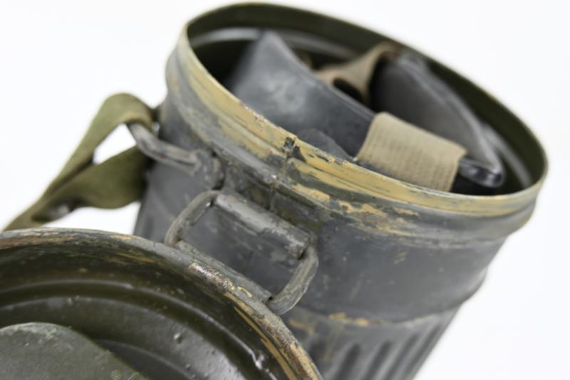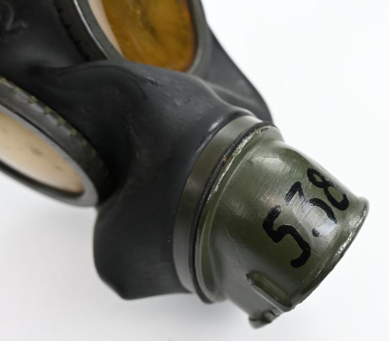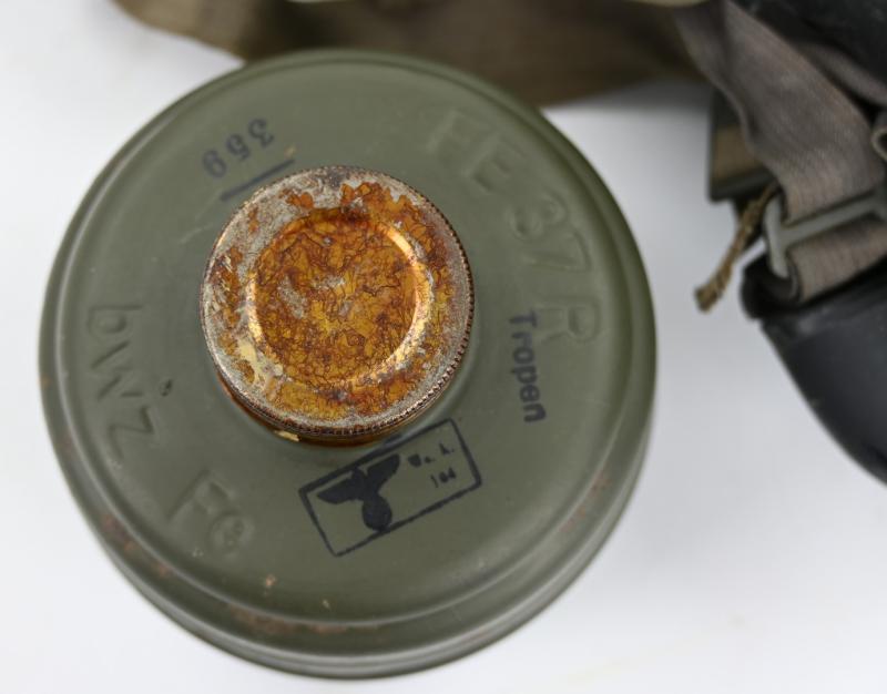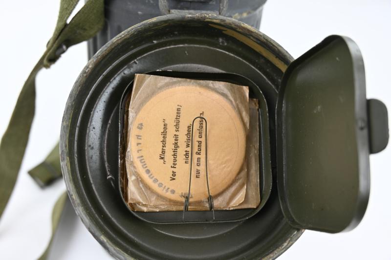 Inside the tornister is still the original cleaning cloth and spring present and also a size 2 rubber gasmask and filter present.
