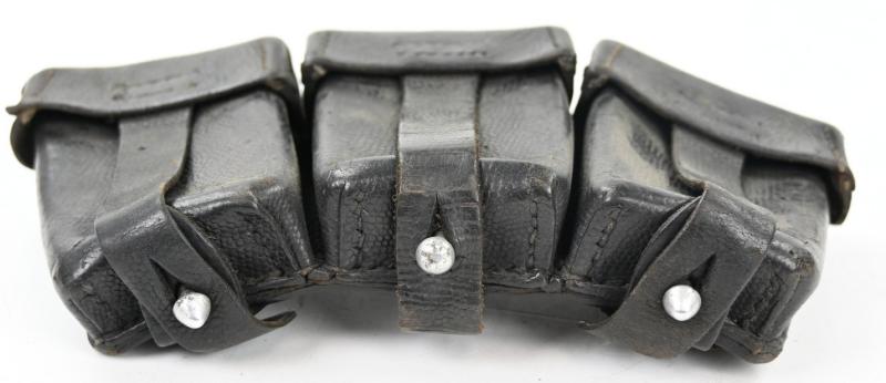 In a combat used condition a German K98 Ammo Pouch. The pouch is nicely maker marked on the reverse side and 1934 dated. The pouch is complete with all dividers and is in a used condition.