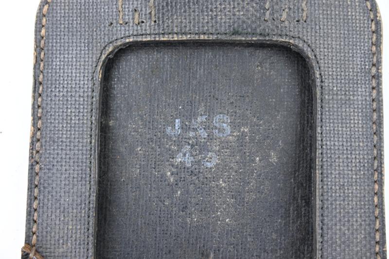 In a near mint condition a stunning German Wehrmacht Entrenching Tool Carryin Cover.(Spatentasche). The carrying cover is made of 'Ersatz' material (Preßstoff) and marked marked by JKS and dated 1945.