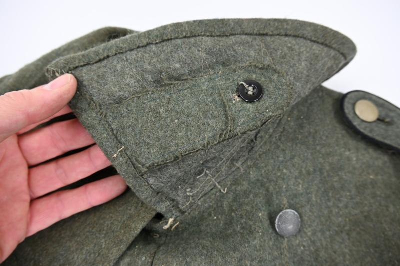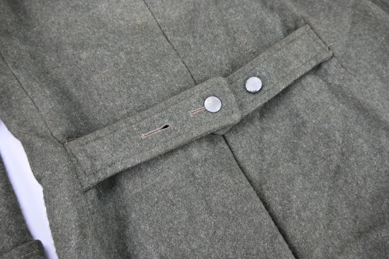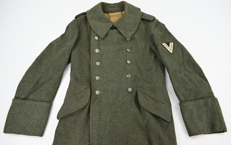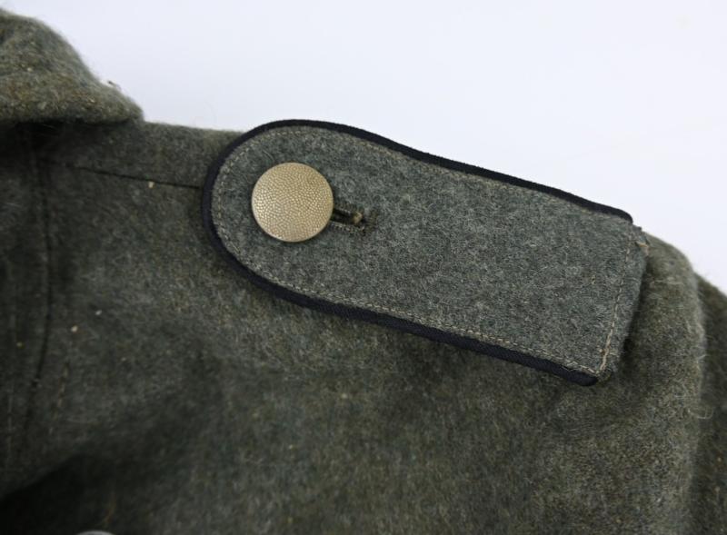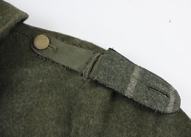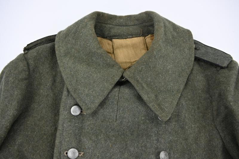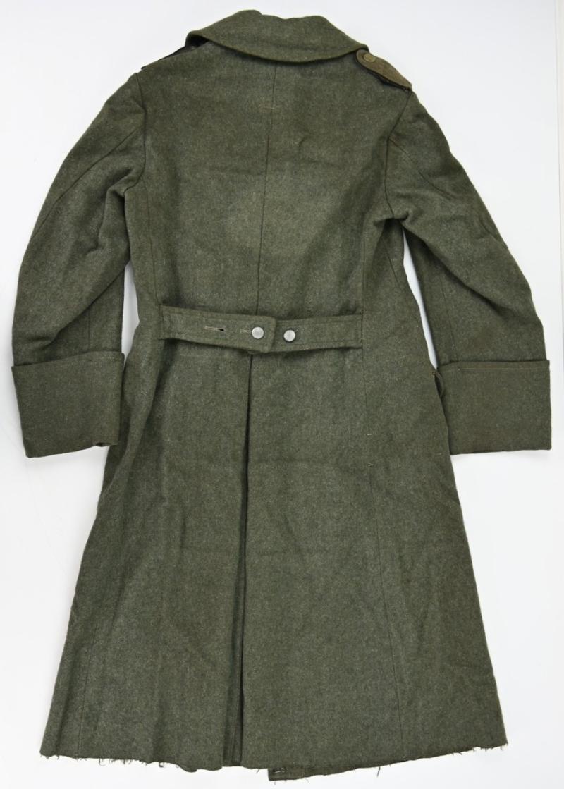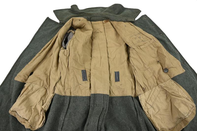 In a very good condition a German Wehrmacht Heer Greatcoat (Tuchmantel). The greatcoat is complete with a pair of enlisted men shoulderstraps with the black piping, indicating a member of the pioneer troops.The greatcoat comes in a good mannequin size and has the size marking on the inside lining justlike the RBN number of the maker.
