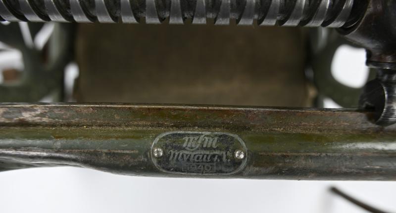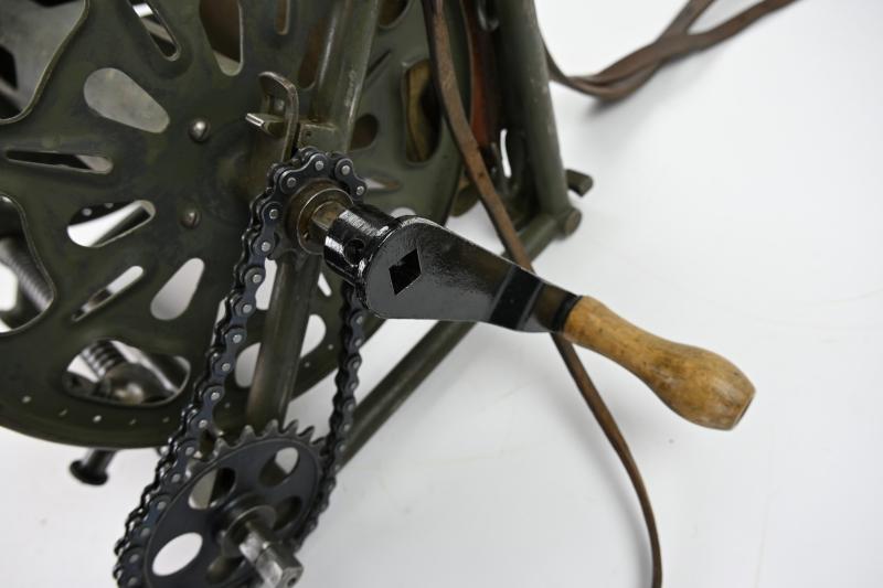 The frame comes in the original paint and is complete with all attached part as the carrying straps, ewuipment pouch, back padding, cable reel chain and tool and the leather break strap.