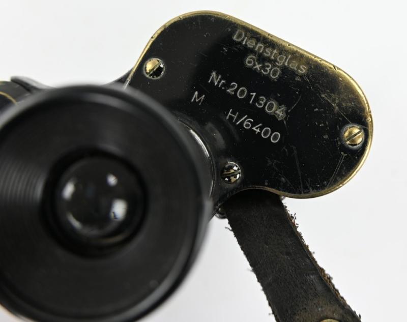The goggles is nicely marked 'Dienstglas 6x30 201304 M H/6400'.