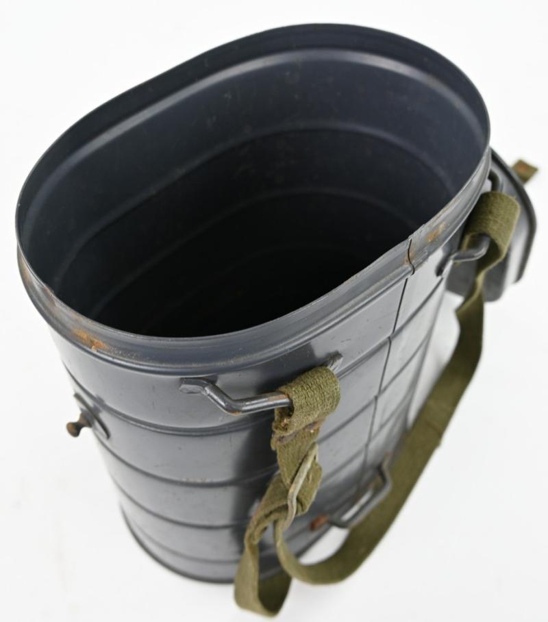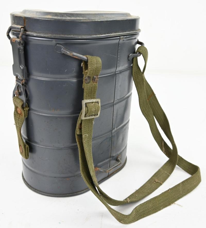In a very good condition a German Luftschutz VM37 Gasmask Tornister made by Auer Berlin. The tornister comes with the original long strap attached.