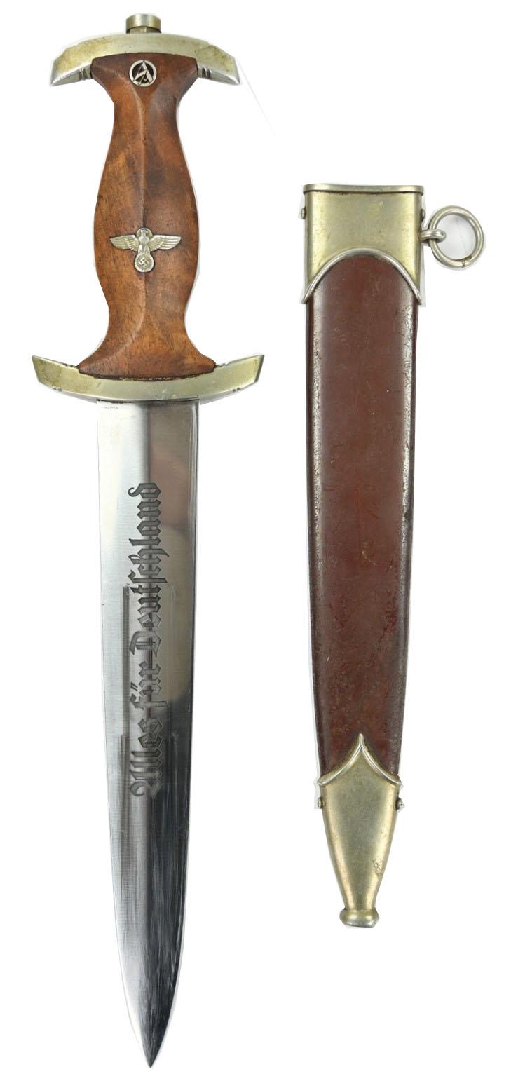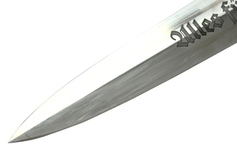 Following the 1934 "Night of the Long Knives" purge, Hitler ordered the Ernst Röhm signature removed from SA and SS honor daggers. Known as "Ground Röhm daggers," these pieces typically have the inscription removed via factory grinding or field-expedient filing, making "ground" or partially ground examples highly collectible.