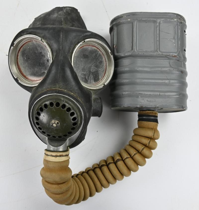 In a very nice condition a British WW2 Gasmask Set in Carrying Bag. The gasmask is nicely 1940 dated and comes with filter and carrying bag.