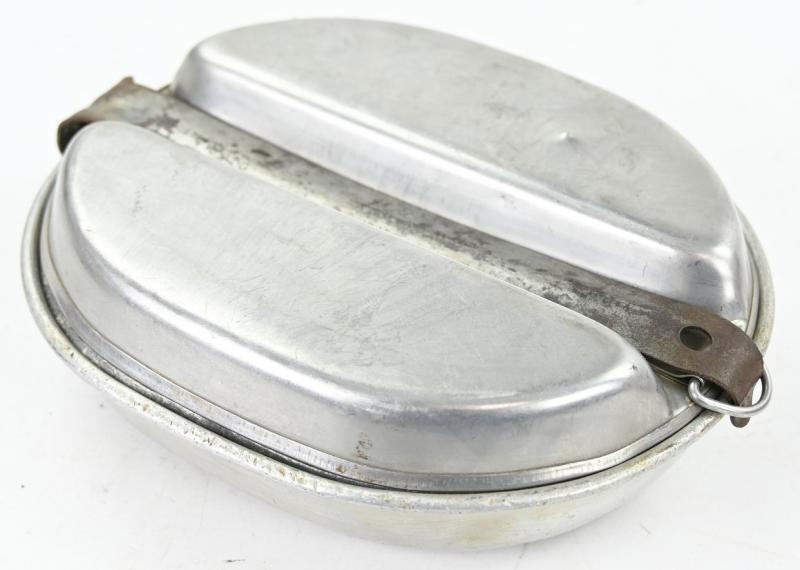 In a very good condition a US WW2 M-1932 Messtin. The zinc made messtin is maker marked by M.C.A. Company and dated 1945. Inside is an extra WW1 pattern cover attached.