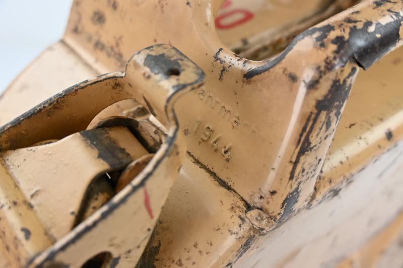 The jerrycan comes in the original tropical Khaki paint and is nicely maker marked and has the text 'Kraftstoff 20L Feuergefahrlich,Wehrmacht 199.