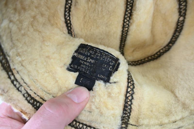 it was issued and standardized in April 1939. They where issued to U.S.A.A.F. aircrew including bomber crews. the USAAF B-2 winter flying cap proved to be very popular in WW2 with American airmen and can be seen on many original USAAF pictures of aircrew. Manufactured from brown leather and fur-lined. Cap is in excellent condition.