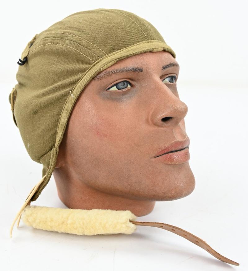 In a stunning mint condition a US Army Air Force Type A-9 Summer Flying Helmet. The helmet comes in a medium size and is complete with the chinstrap and the ear cussions still intact. A very good example!