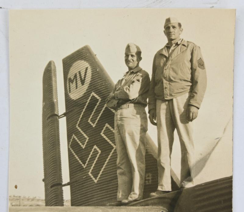 In a very good condition a stunning US WW2 Picture of US Army members on the tale of a German Junkers JU-88 Airplane. The picture comes in a postcard size approx.