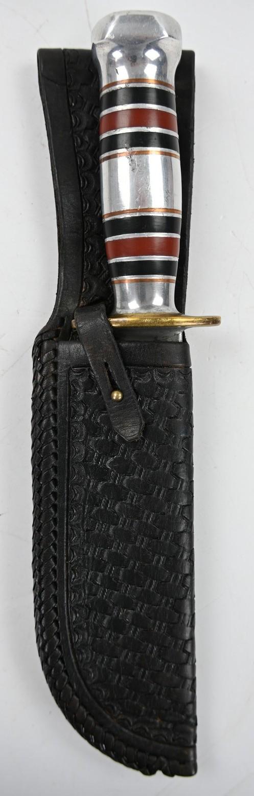 In a very nice condition a US WW2 Upscale Theather Dagger with scabbard. The set comes with a blade of 6,5inch and is one of the theather made ww2 fighting knives! A very stunning example!