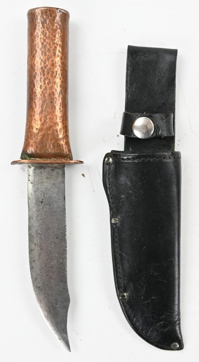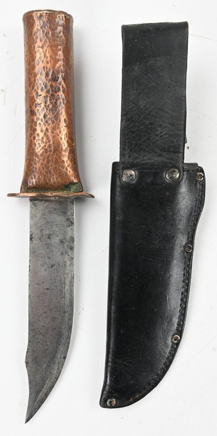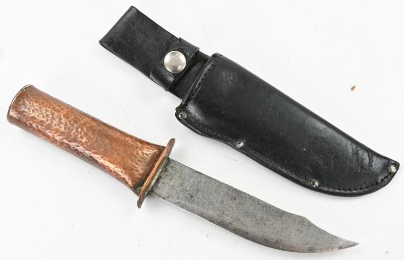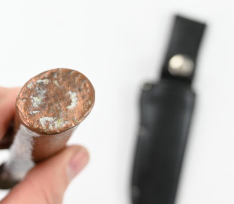 In a very nice condition a stunning US WW2 Private Made Fighting Knife. The knife comes with a bronze made grip and with a supple leather scabbard. A very stunning fighting knife!