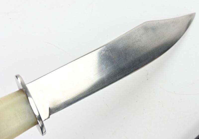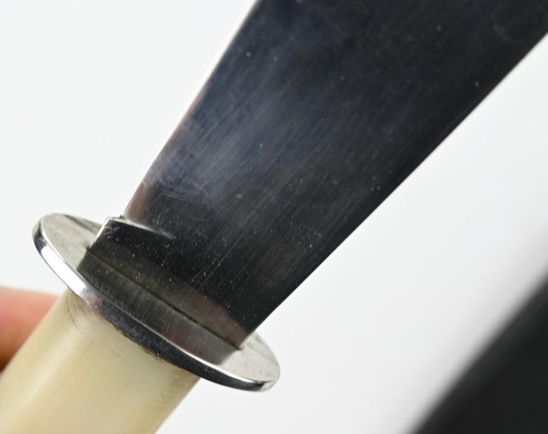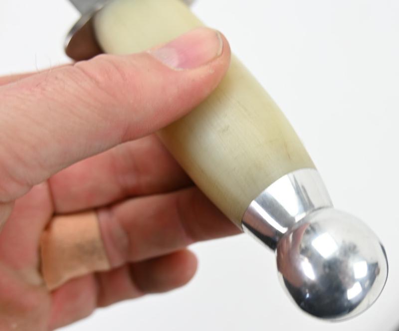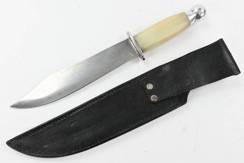 The knife comes in a brown leather scabbard in a supple condition (not certain it's ww2 period made)