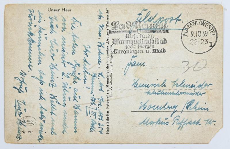 In a very nice condition a German Wehrmacht (Heer) Postcard written in 1939.