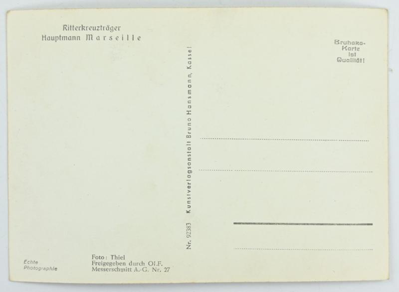 In a very good condition a German Luftwaffe Postcard of Hauptmann Marseille, Recipient of the Knight's Cross of the Iron Cross.