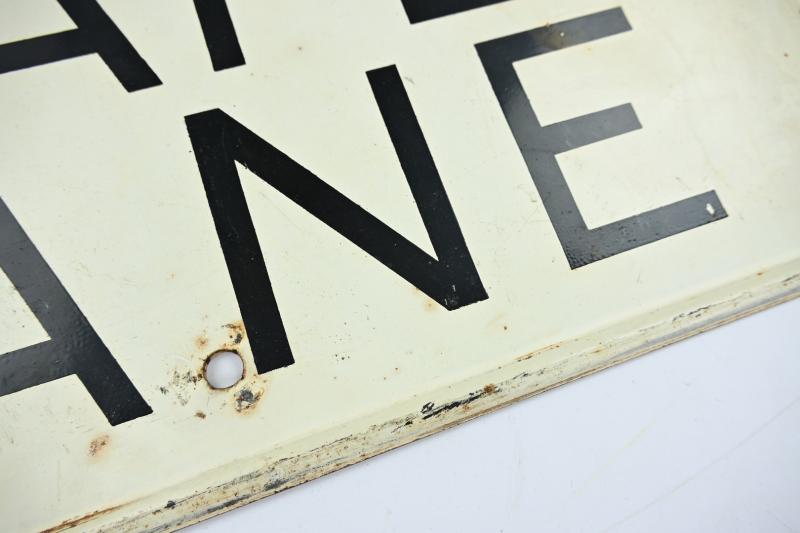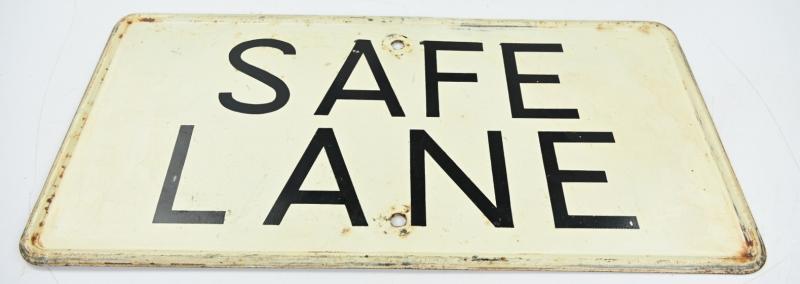 In a very good condition an Allied WW2 period metal sign marked with the text 'SAFE LANE' indicating a safe route. The sign comes in a size of approx 40x60cm. A very stunning item for display!