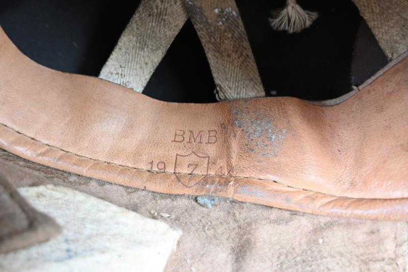 The helmet is maker marked by BMB and is dated 1944.