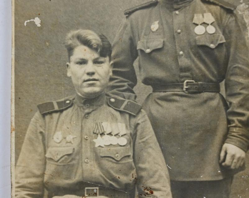 In a very nice condition a Sovjet WW2 Portrait Picture of 2 soldiers or brothers together. The picture comes in a postcard size and is written on the reverse side.