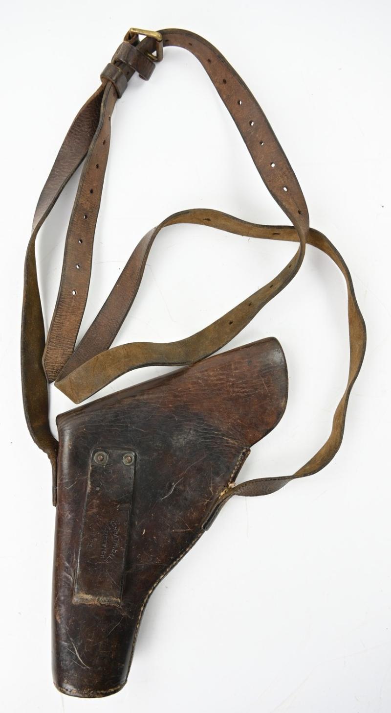 In a very nice condition a British WW2 Flare Gun Holster. The leather holster is complete with the original carrying strap. The holster is on the reverse side nicely maker marked by Konrath Dale & Fishwick.