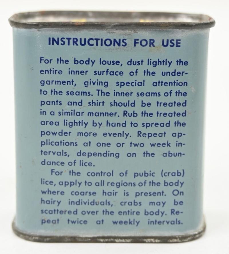 In a very good condition a US WW2 Tin Can of Insecticide louse Powder. The tin can comes with content. Nice item for display!