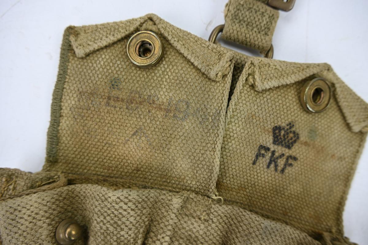 In a very nice used condition a British WW2 .303 Ammo Pouch Set. The set comes with hard to read stamps inside.