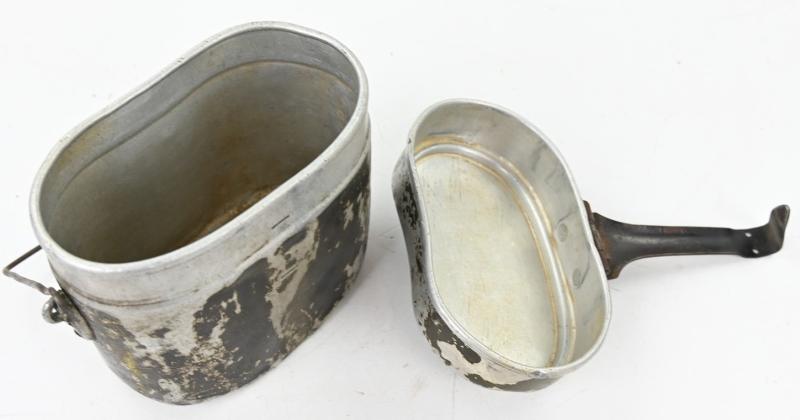 In a used condition a German Wehrmacht M31 Messtin. The messtin comes in Aluminium and has traces of the original paint.