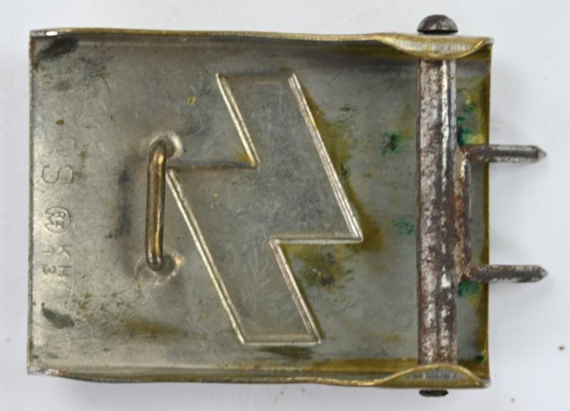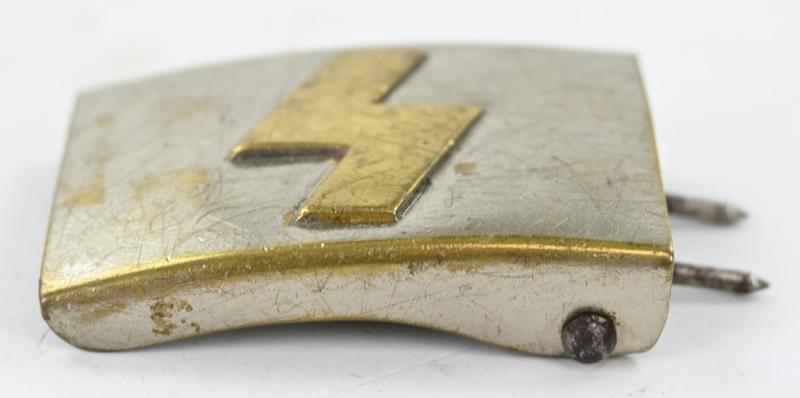 The brass, nickle plated beltbuckle comes in a working condition with both prongs.